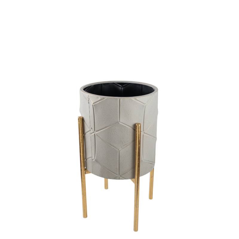 Κομψό μεταλλικό κασπό σε μπεζ χρώμα με χρυσά πόδια, ιδανικό για μοντέρνα ή κλασική διακόσμηση. Προσθέτει στυλ και φινέτσα σε κάθε χώρο, εσωτερικό ή εξωτερικό.
