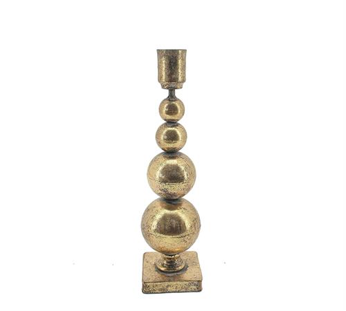 Μεταλλικό κηροπήγιο σε σχήμα μπάλα, αντικέ χρυσό, ύψους 38.5εκ. Ιδανικό για κομψή και γιορτινή διακόσμηση σαλονιού ή τραπεζιού.