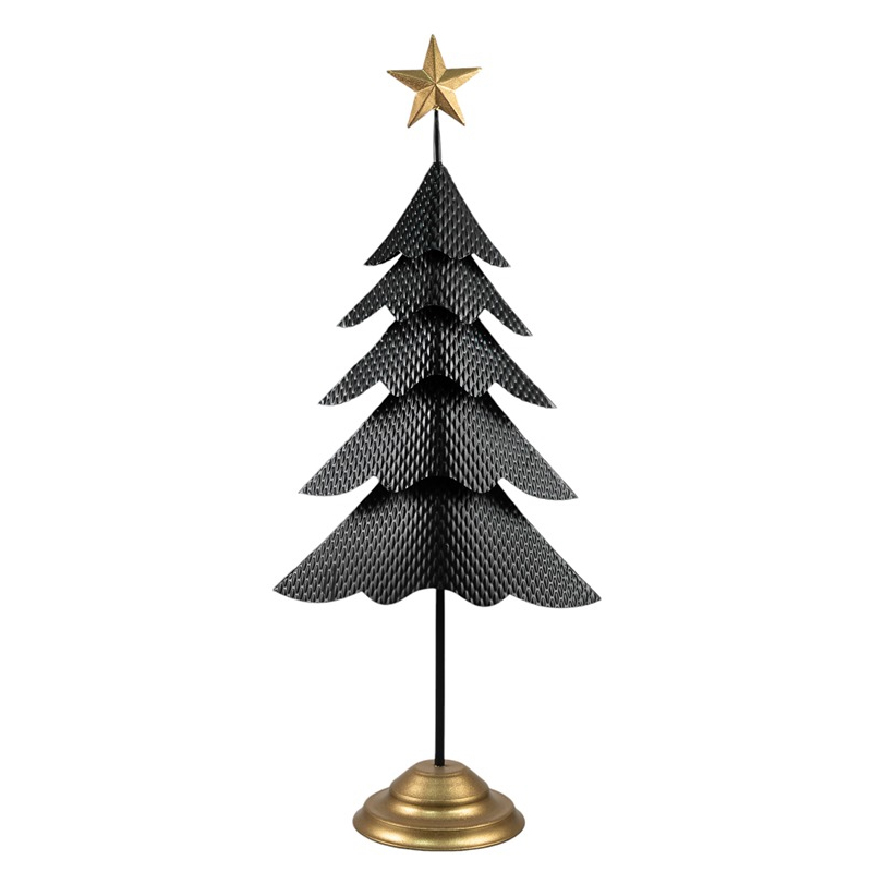 Δώστε μοντέρνα και πολυτελή διάσταση στη χριστουγεννιάτικη διακόσμησή σας με το μεταλλικό χριστουγεννιάτικο δέντρο σε μαύρο και χρυσό σφυρηλατημένο φινίρισμα. Με ύψος 78,5cm, ξεχωρίζει για την κομψότητα και τη λεπτομέρεια του σφυρηλατημένου μετάλλου, προσφέροντας πολυτελή και εντυπωσιακή εμφάνιση σε σαλόνια, εισόδους ή επαγγελματικούς χώρους. Ιδανικό για όσους θέλουν στυλ, ανθεκτικότητα και μοντέρνα γιορτινή ατμόσφαιρα.