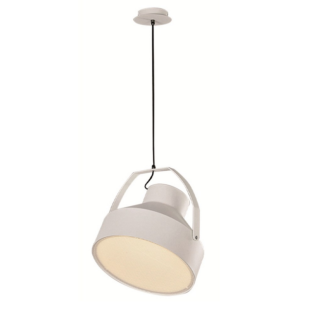 Κρεμαστό φωτιστικό οροφής κατασκευασμένο από μέταλλο σε λευκό χρώμα με λευκό πλαστικό κάλυμμα.
