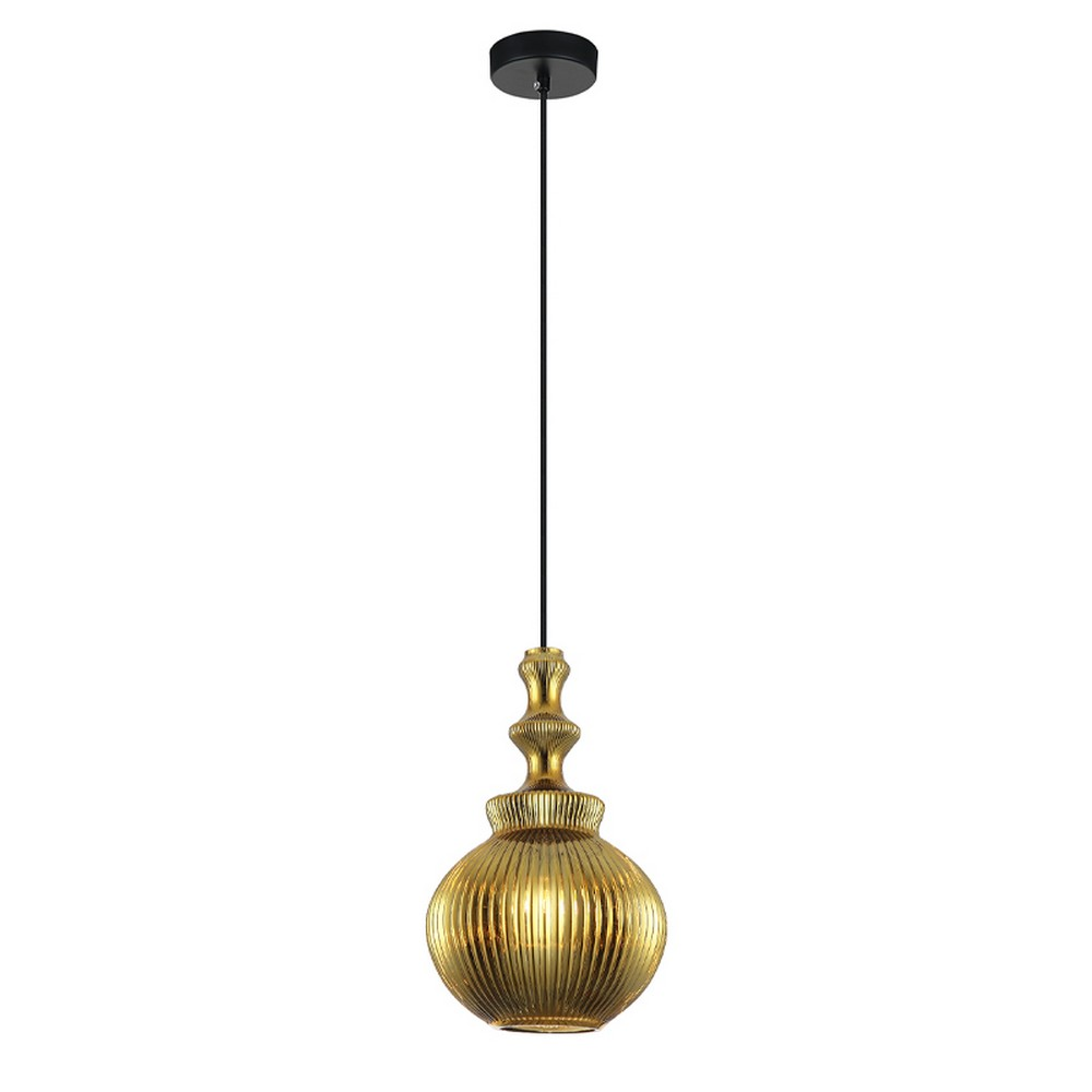 Κρεμαστό φωτιστικό οροφής με μαύρη ανάρτηση και γυαλί σε χρυσό χρώμα.