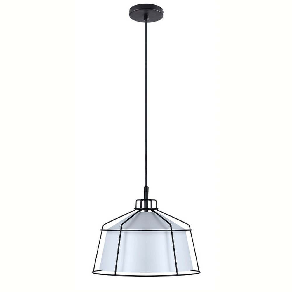 Μοντέρνο φωτιστικό οροφής σε λευκό χρώμα με μεταλλικό μαύρο σκελετό.
