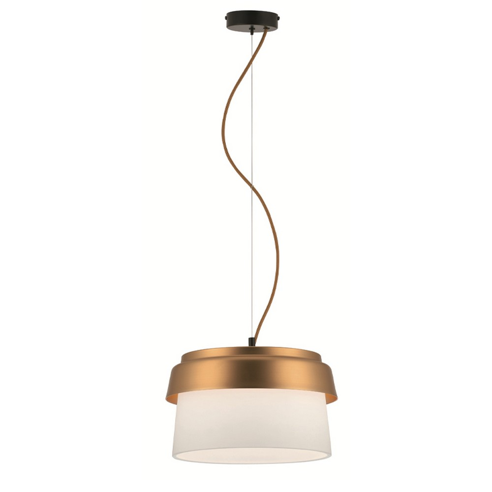 Κρεμαστό φωτιστικό οροφής με γυαλί σε λευκό ματ χρώμα και μεταλλική ανάρτηση σε μαύρο-χρυσό χρώμα.