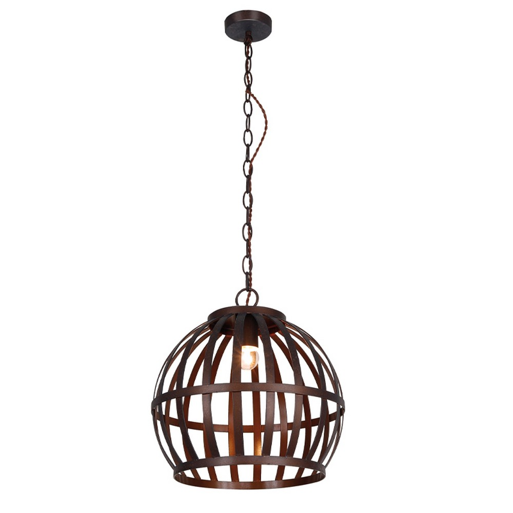 Μοντέρνο φωτιστικό οροφής από μέταλλο σε καφέ χρώμα με ιδιαίτερο σχήμα που θυμίζει κλουβί.