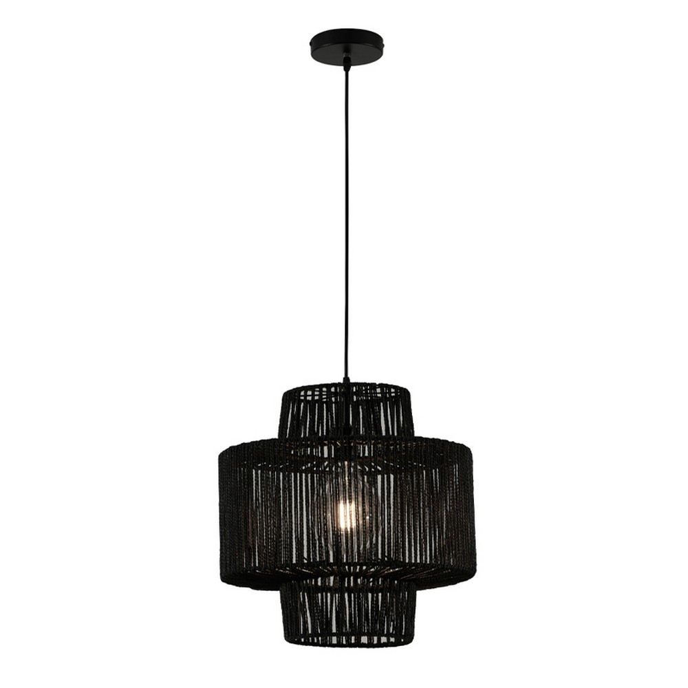Κρεμαστό φωτιστικό οροφής με καπέλο από κορδόνι σε μαύρο χρώμα.
