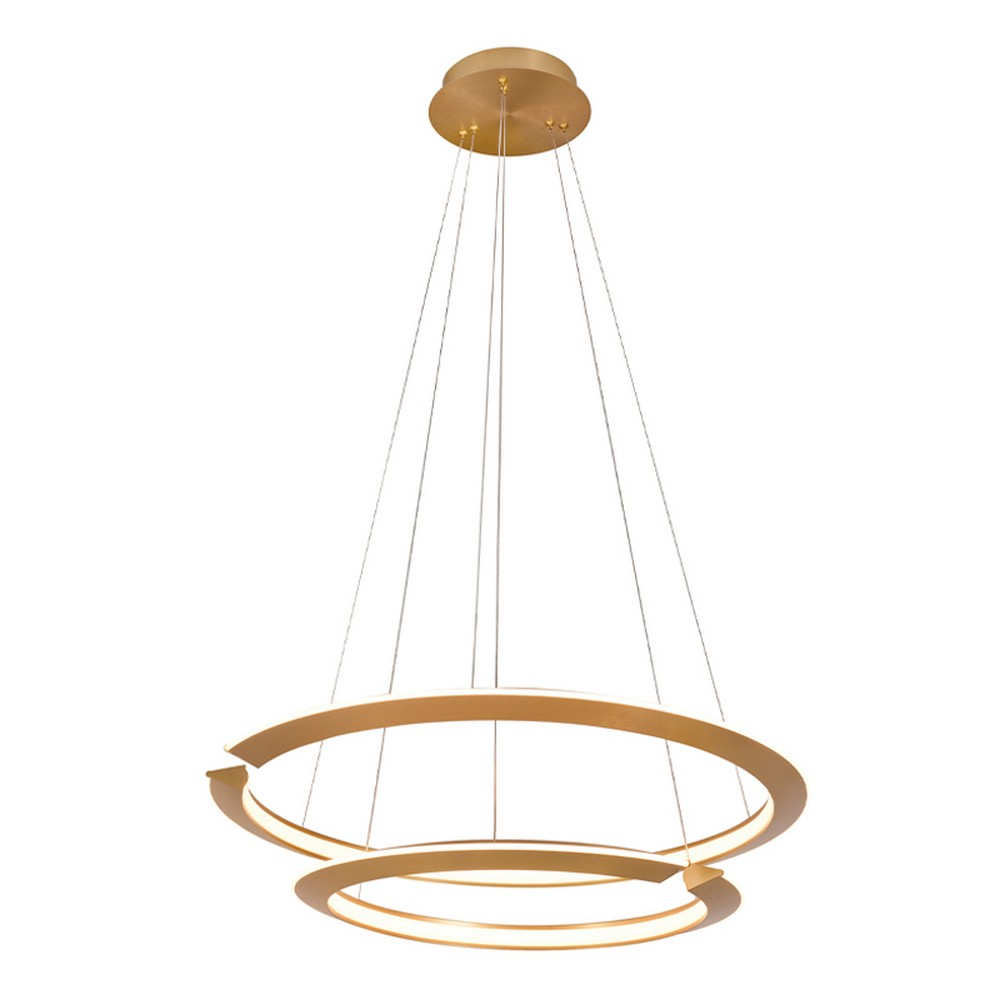 Μοντέρνο φωτιστικό οροφής LED με δύο κύκλους από μέταλλο σε χρυσό ματ χρώμα.
