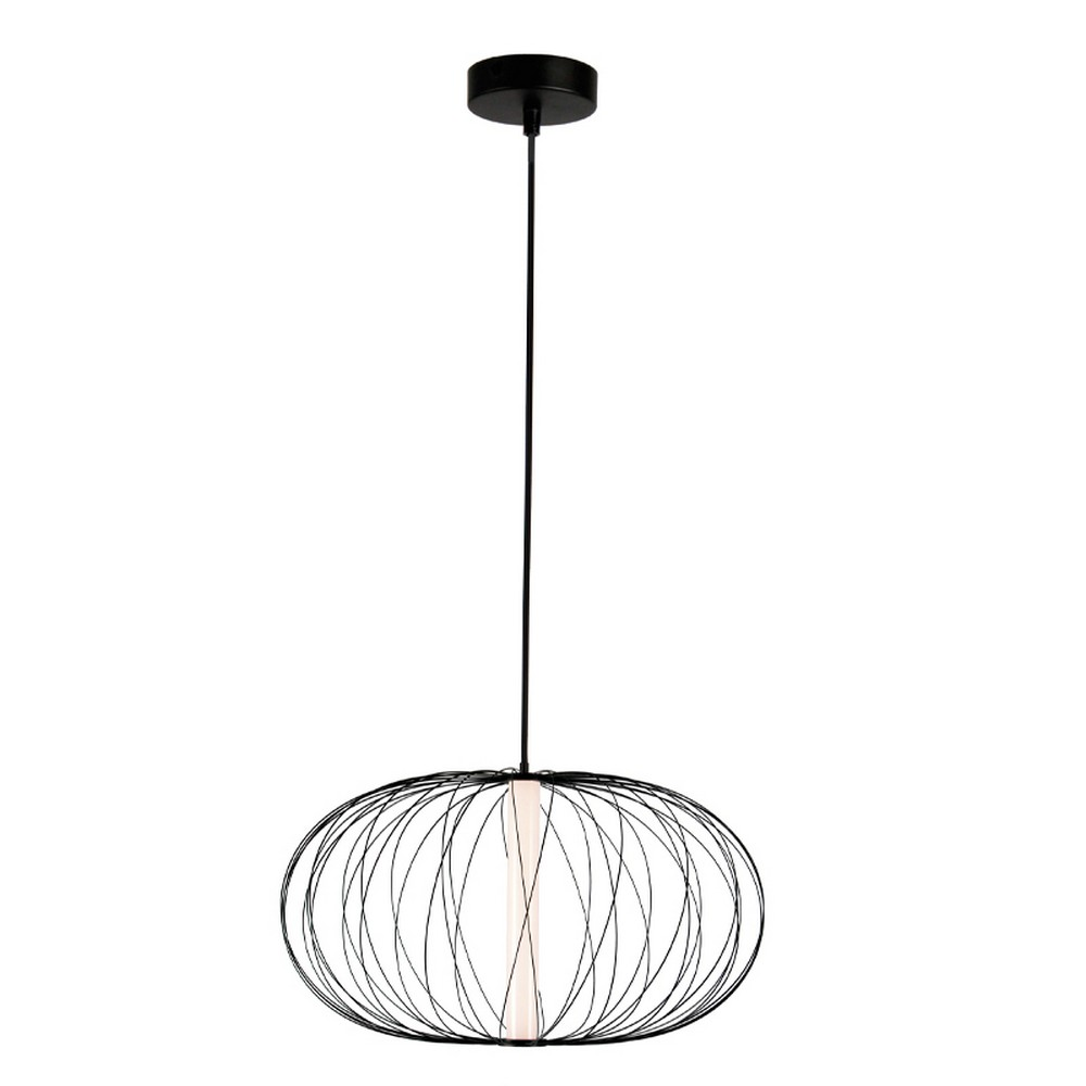 Μοντέρνο φωτιστικό οροφής LED από μέταλλο σε μαύρο χρώμα με ακρυλικό κύλινδρο στο εσωτερικό του.