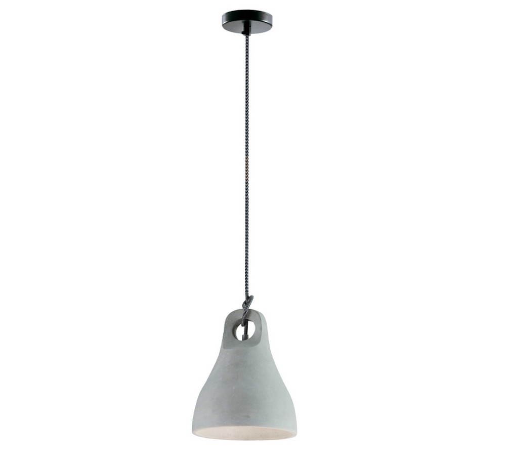 Κρεμαστό φωτιστικό οροφής με καπέλο από τσιμέντο σε γκρι χρώμα με λευκό εσωτερικό. Διαθέτει μαύρη ανάρτηση με υφασμάτινο καλώδιο σε λευκό-μαύρο χρώμα.