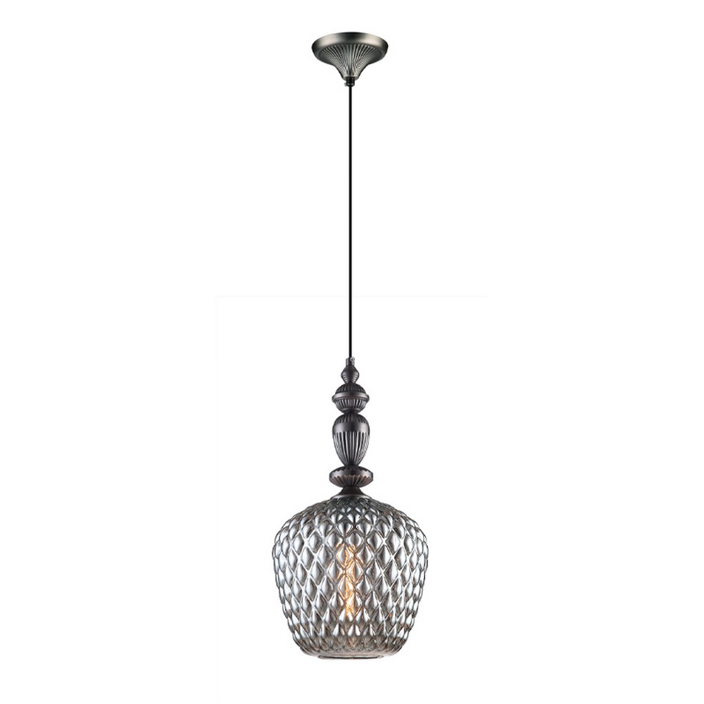Κρεμαστό φωτιστικό οροφής με φιμέ γυαλί και μεταλλική ανάρτηση με λεπτομέρειες σε κασσίτερο.