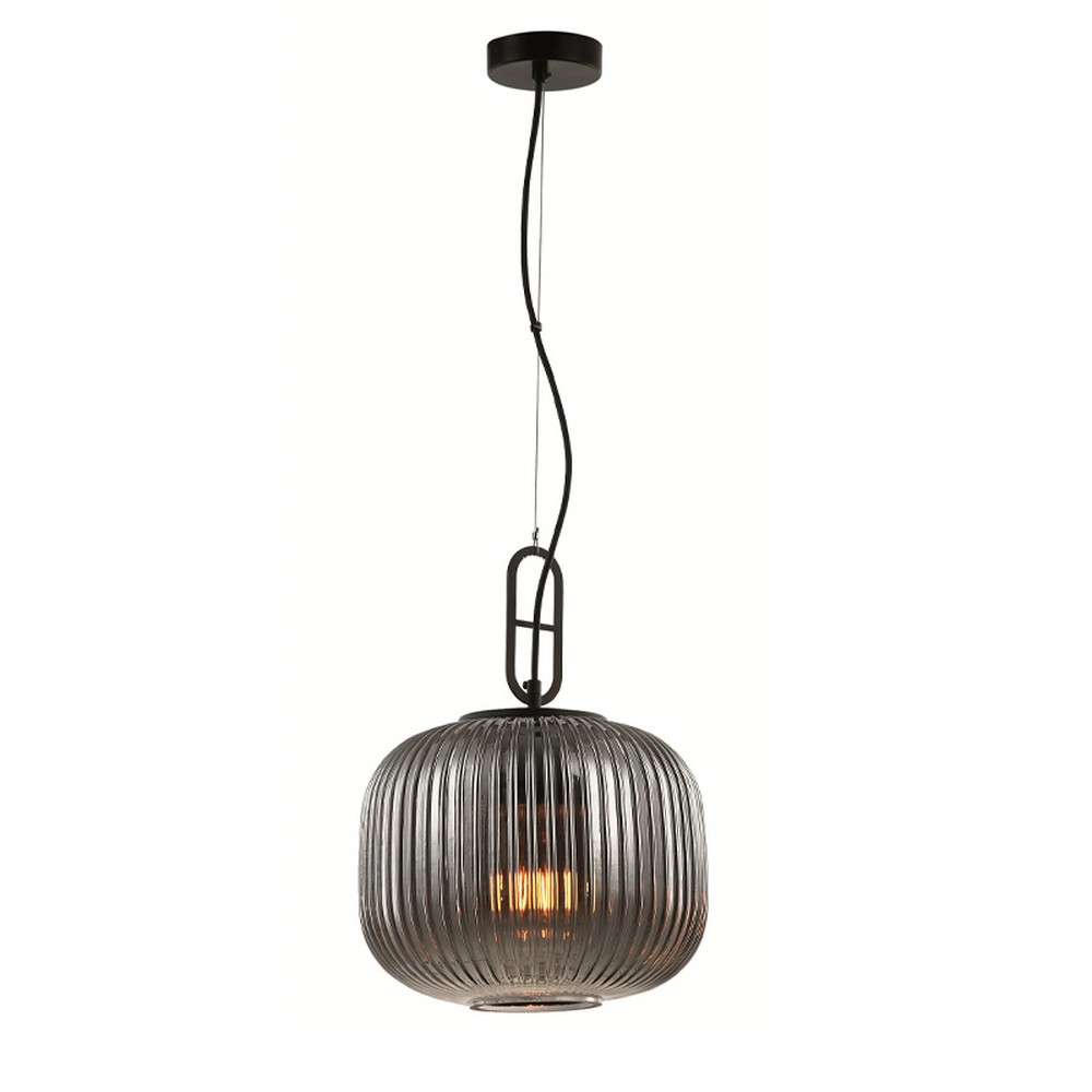 Κρεμαστό φωτιστικό οροφής με μαύρη ανάρτηση και ανάγλυφο φιμέ γυαλί.