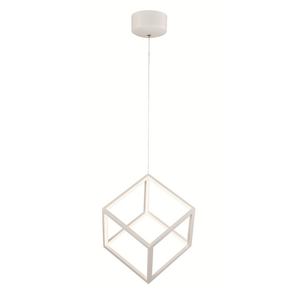 Μοντέρνο κρεμαστό φωτιστικό σε σχήμα κύβου, κατασκευασμένο από μέταλλο σε λευκό χρώμα. Διαθέτει ενσωματωμένο φωτισμό LED συνολικής ισχύος 50W και απόδοσης 4000 Lumen σε θερμό λευκό χρώμα (3000K).