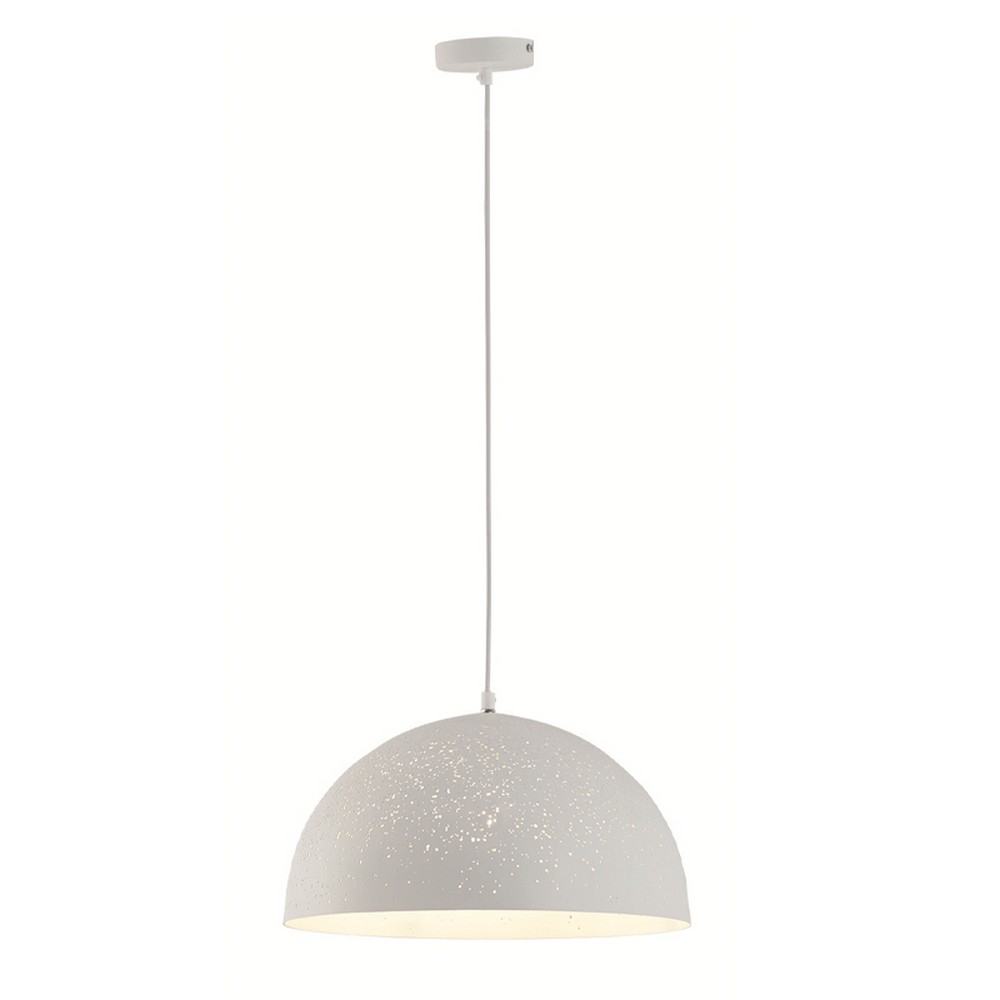 Κρεμαστό φωτιστικό οροφής κατασκευασμένο από μέταλλο σε λευκό χρώμα με χρυσές λεπτομέρειες.