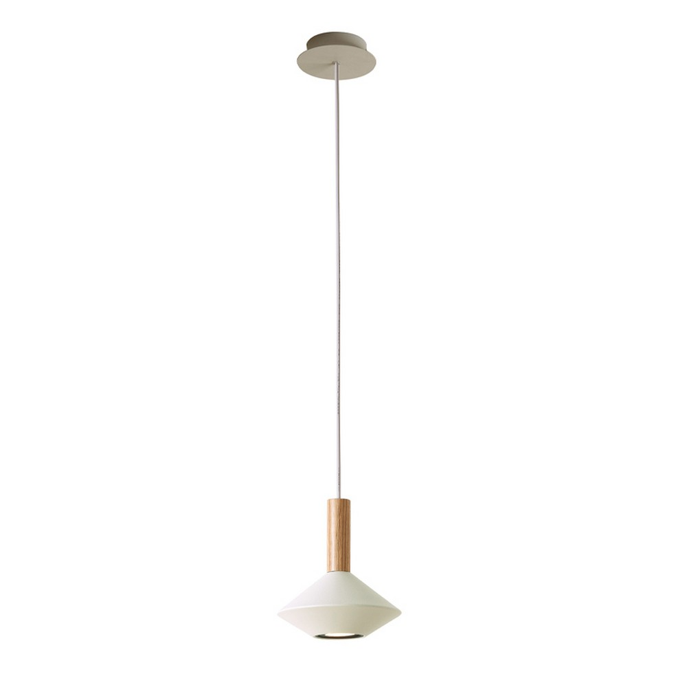 Μοντέρνο φωτιστικό οροφής από μέταλλο σε λευκό χρώμα με ξύλινη λεπτομέρεια.