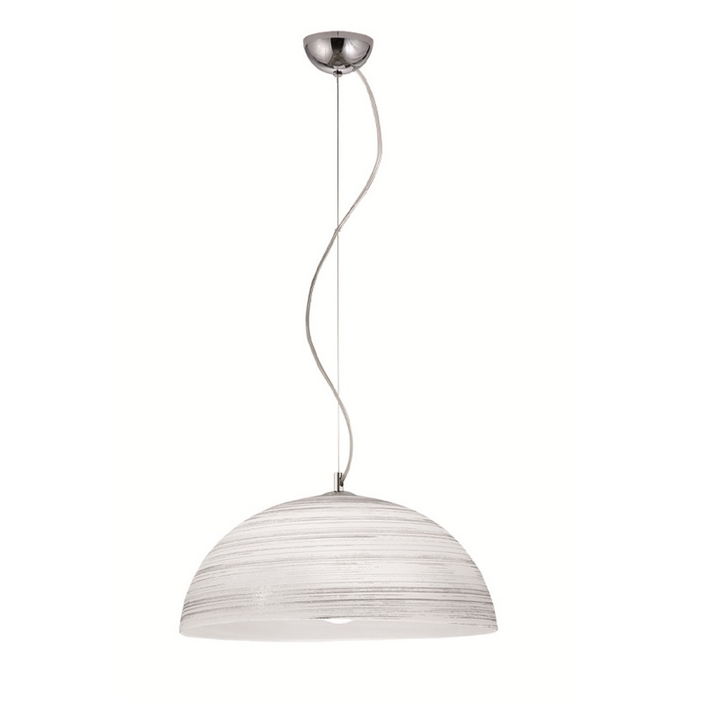 Κρεμαστό φωτιστικό οροφής με λευκό γυαλί σε ανάγλυφο decor και ανάρτηση σε νίκελ ματ χρώμα.