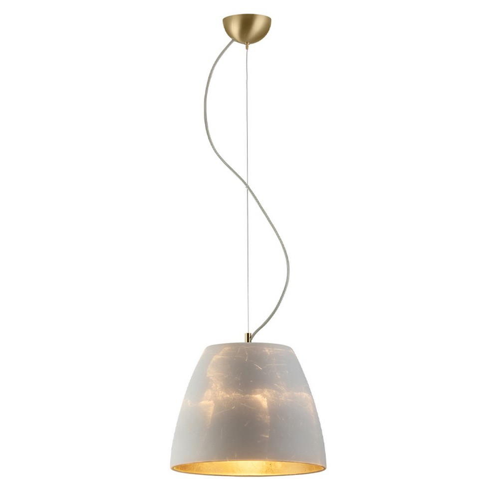 Κρεμαστό φωτιστικό οροφής σε λευκό χρώμα με ανάρτηση σε χρυσό ματ χρώμα. Το γυαλί του είναι διακοσμημένο με φύλλα χρυσού εσωτερικά.