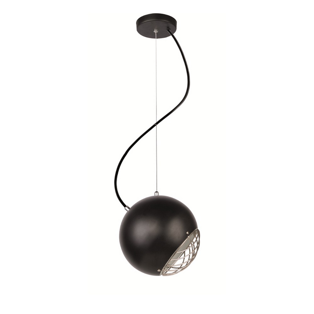Κρεμαστό φωτιστικό οροφής κατασκευασμένο από μέταλλο σε μαύρο χρώμα με διάτρητη λεπτομέρεια στο κάτω μέρος σε νίκελ ματ χρώμα.