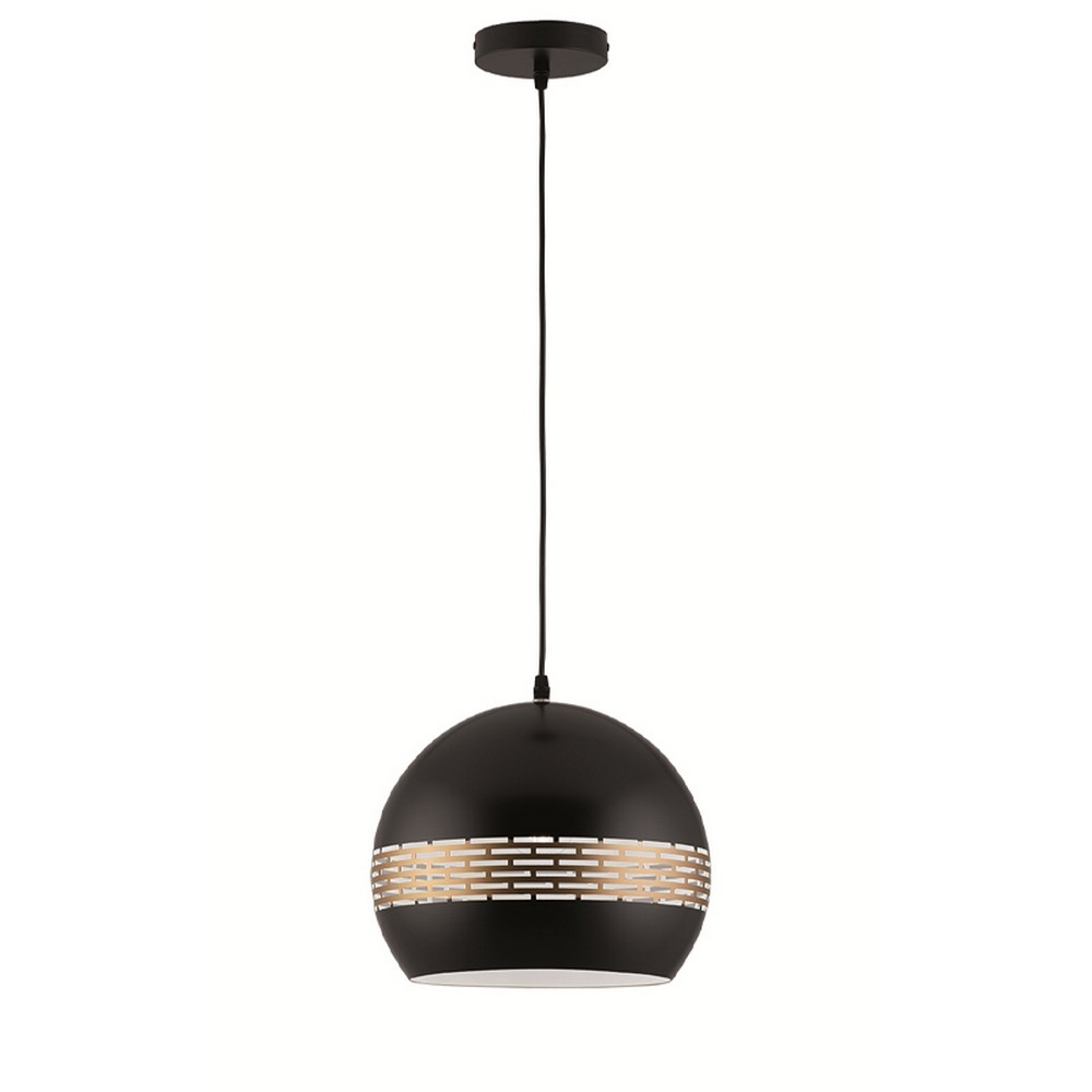 Κρεμαστό φωτιστικό οροφής κατασκευασμένο από μέταλλο σε μαύρο χρώμα με χρυσές λεπτομέρειες.