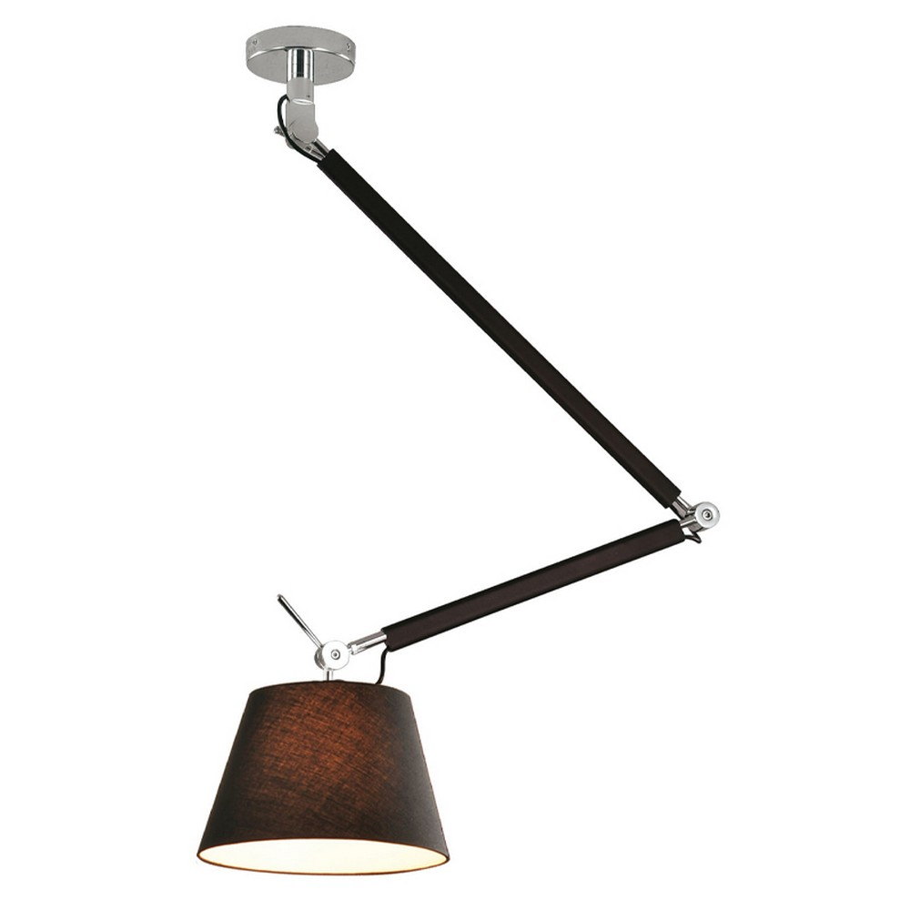 Μοντέρνο φωτιστικό οροφής με δυνατότητα κίνησης και μαύρο καπέλο από πλαστικοποιημένο ύφασμα. Διαθέτει μεταλλική βάση σε μαύρο χρώμα με νίκελ ματ λεπτομέρειες.