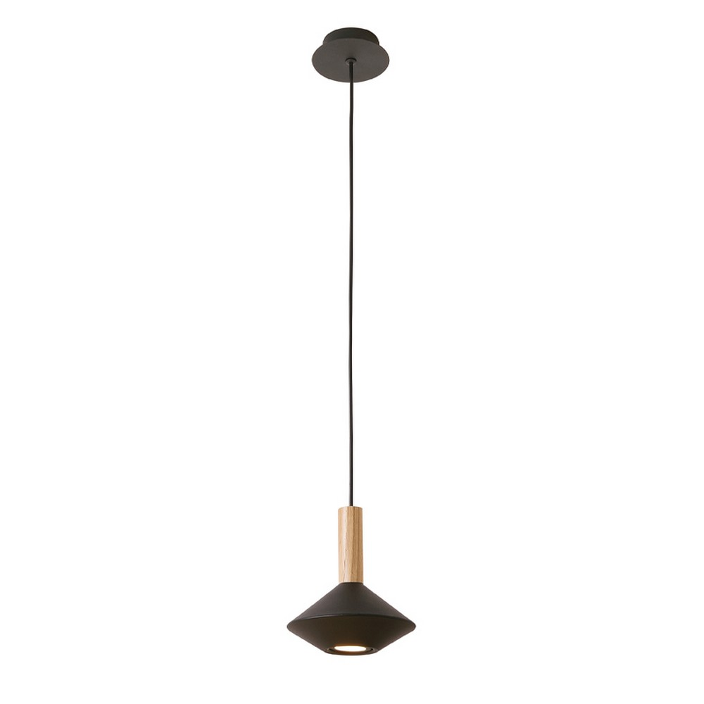 Μοντέρνο φωτιστικό οροφής από μέταλλο σε μαύρο χρώμα με ξύλινη λεπτομέρεια.