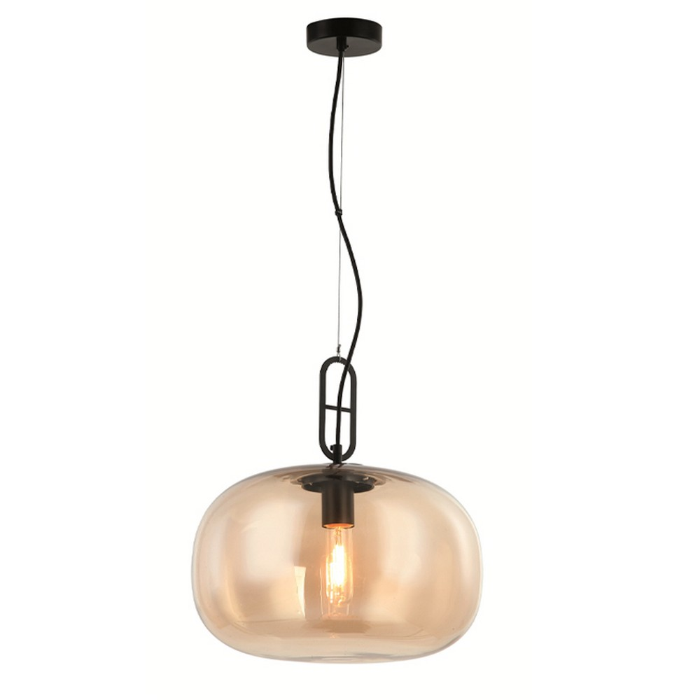Κρεμαστό φωτιστικό οροφής με γυαλί σε μελί χρώμα και μαύρη ανάρτηση.