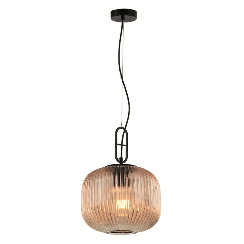 Κρεμαστό φωτιστικό οροφής με μαύρη ανάρτηση και ανάγλυφο γυαλί σε μελί χρώμα.