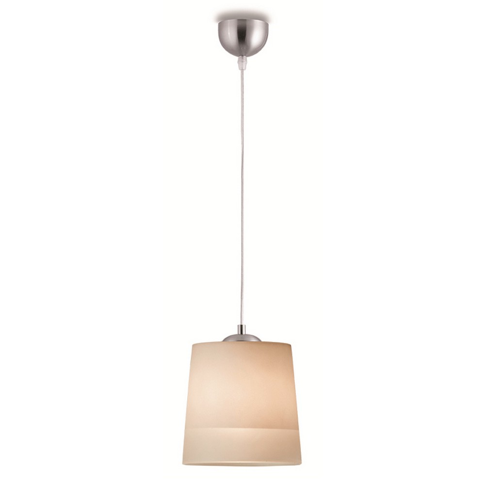 Κρεμαστό φωτιστικό οροφής με μεταλλική ανάρτηση σε νίκελ ματ χρώμα και μπεζ γυαλί σατινάτο.
