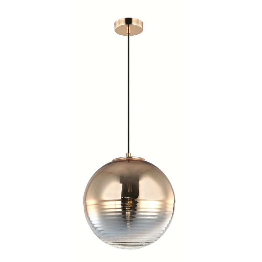 Κρεμαστό φωτιστικό οροφής με γυαλί-καθρέπτη σε χρυσό χρώμα και μαύρη/επιχρυσομένη ανάρτηση.
