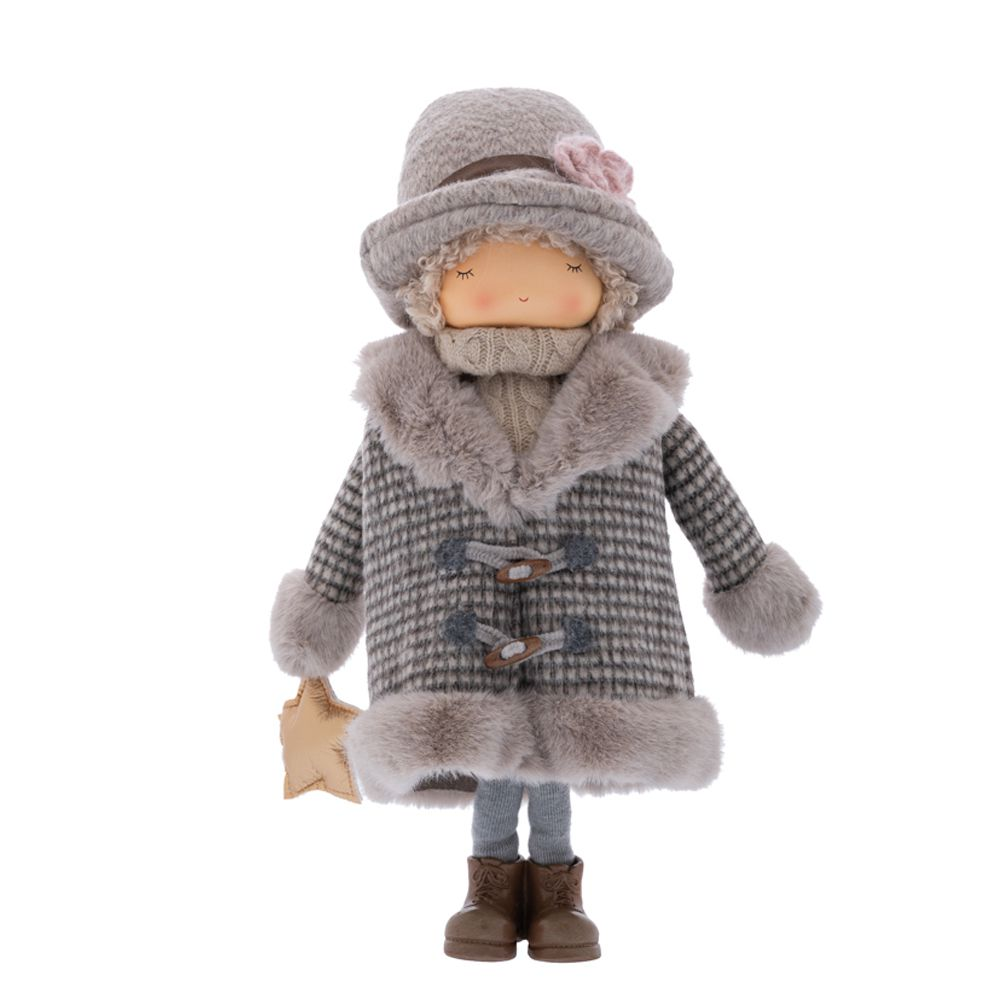 Μπεζ λούτρινο κορίτσι 25x16x44 εκ. – ιδανικό για χριστουγεννιάτικη ή παιδική διακόσμηση. Το γλυκό του βλέμμα και η απαλότητα του υφάσματος δημιουργούν μια ζεστή ατμόσφαιρα.