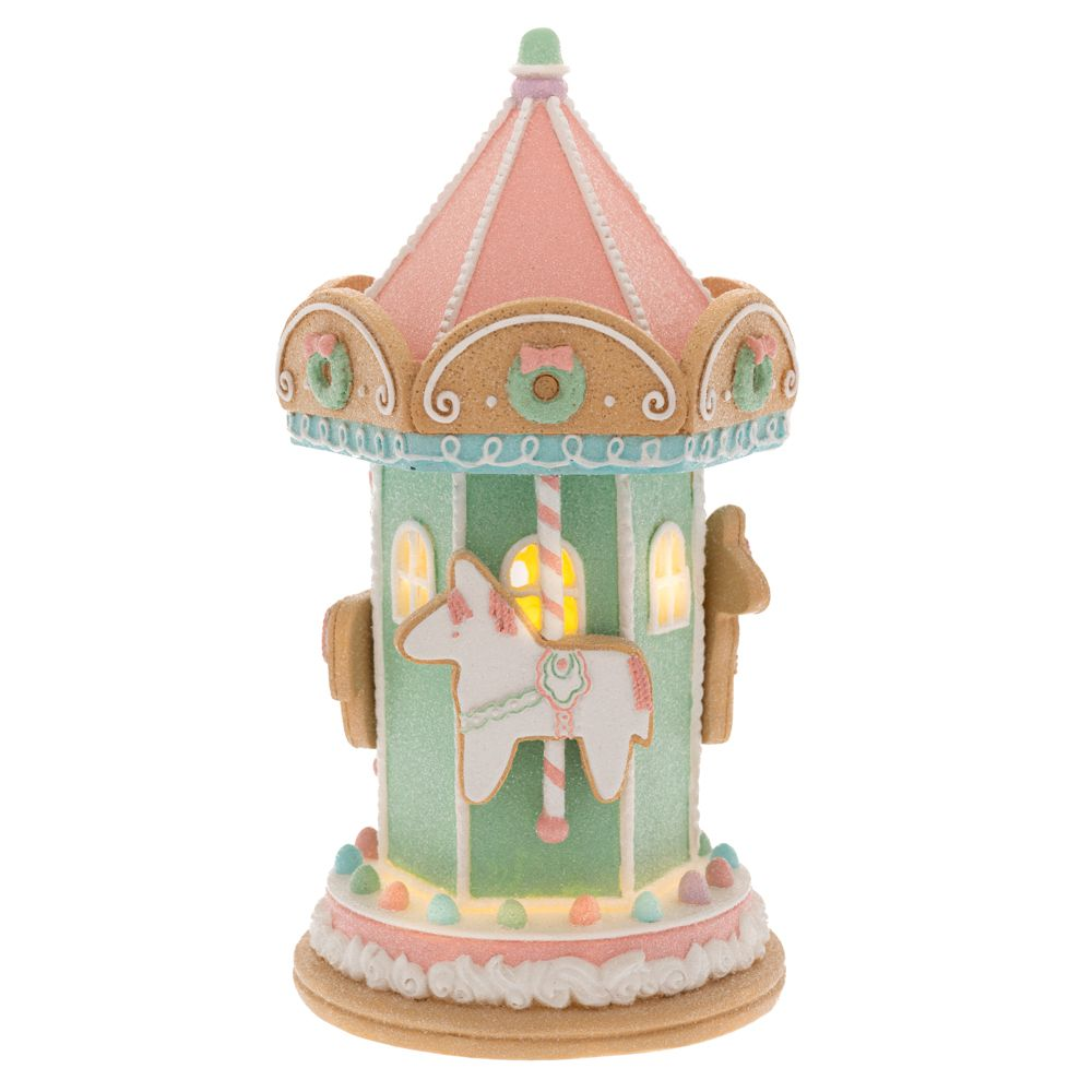 Παστέλ φωτιζόμενο πολυρεζίν καρουζέλ (12x11.5x22 εκ.) – παραμυθένιο χριστουγεννιάτικο διακοσμητικό με παστέλ αποχρώσεις και LED φωτισμό, ιδανικό για μια γιορτινή ατμόσφαιρα.