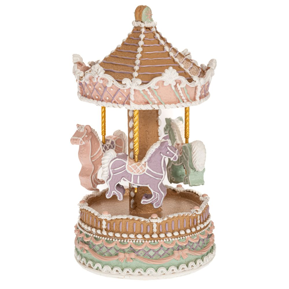 Παστέλ gingerbread καρουζέλ με μουσική (Φ11x21 εκ.) – ένα όμορφο χριστουγεννιάτικο διακοσμητικό με γιορτινή μελωδία, ιδανικό για να στολίσετε το σπίτι σας με χρώμα και μαγεία.