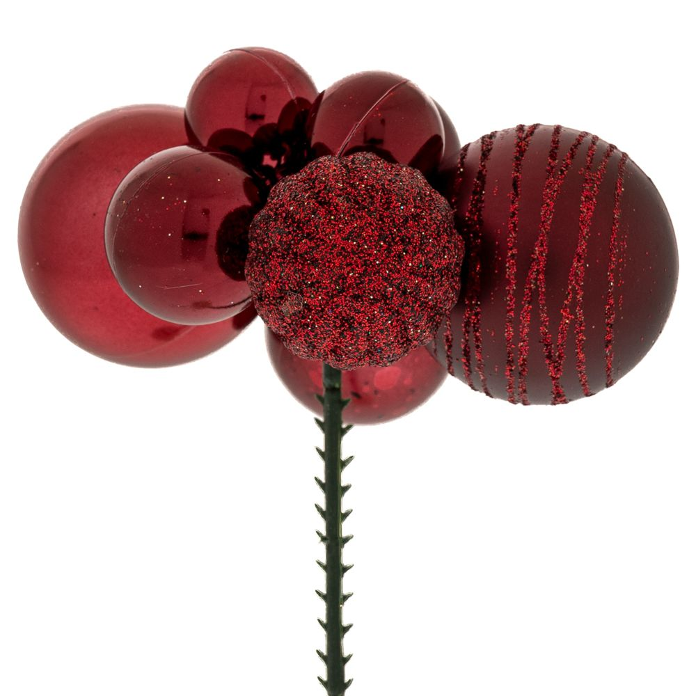 Διακοσμητικά πικ με 8 μπορντώ μπαλίτσες, ύψους 15εκ. Ιδανικά για γιορτινές συνθέσεις, στεφάνια ή βάζα, προσθέτοντας χρώμα, ζωντάνια και γιορτινή διάθεση στον χώρο.