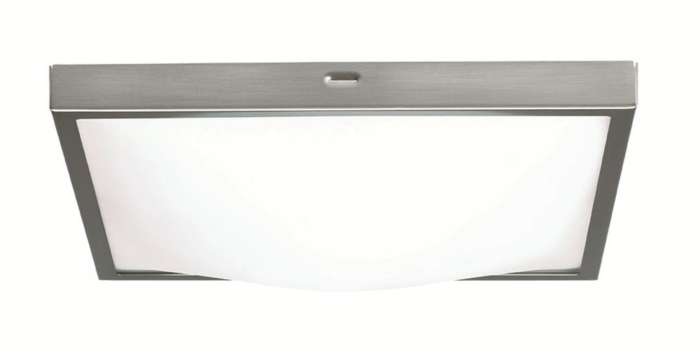 Μοντέρνα πλαφονιέρα κατασκευασμένη από μέταλλο σε νίκελ ματ χρώμα με λευκό γυαλί.