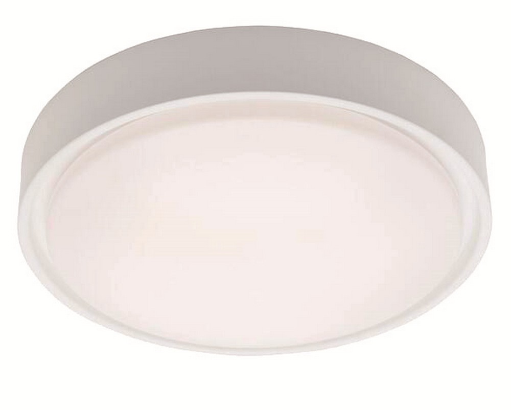 Μοντέρνα πλαφονιέρα με σχήμα κύκλου, κατασκευασμένη από μέταλλο σε λευκό χρώμα.