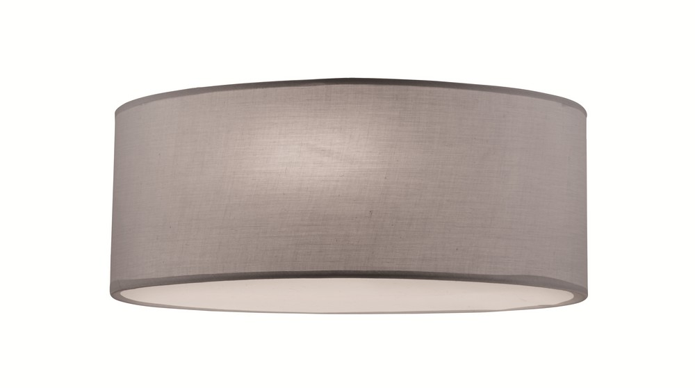 Πλαφονιέρα με υφασμάτινο αμπαζούρ σε γκρι χρώμα και λευκό κάλυμμα στην κάτω πλευρά.