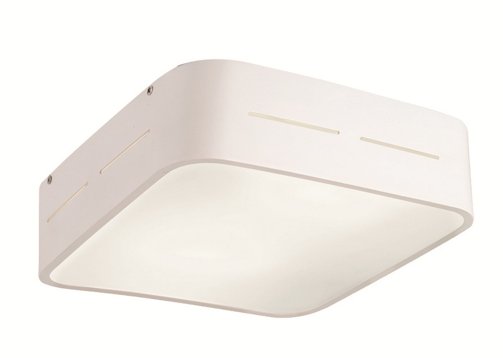 Μοντέρνα πλαφονιέρα κατασκευασμένη από αλουμίνιο σε λευκό χρώμα με λευκό γυαλί σατινάτο.