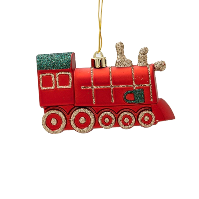 Το πλαστικό στολίδι σε σχήμα κόκκινου τρενάκι με πράσινο glitter, σε σετ 2 τεμαχίων των 11cm, αποτελεί μια χαρούμενη και παιχνιδιάρικη προσθήκη στη χριστουγεννιάτικη διακόσμηση. Ιδανικό για το δέντρο, στεφάνια ή γιορτινά τραπέζια, προσφέρει ζωντάνια, χρώμα και γιορτινή διάθεση σε κάθε χώρο, ενώ το εύχρηστο μέγεθός του επιτρέπει ευέλικτη τοποθέτηση.