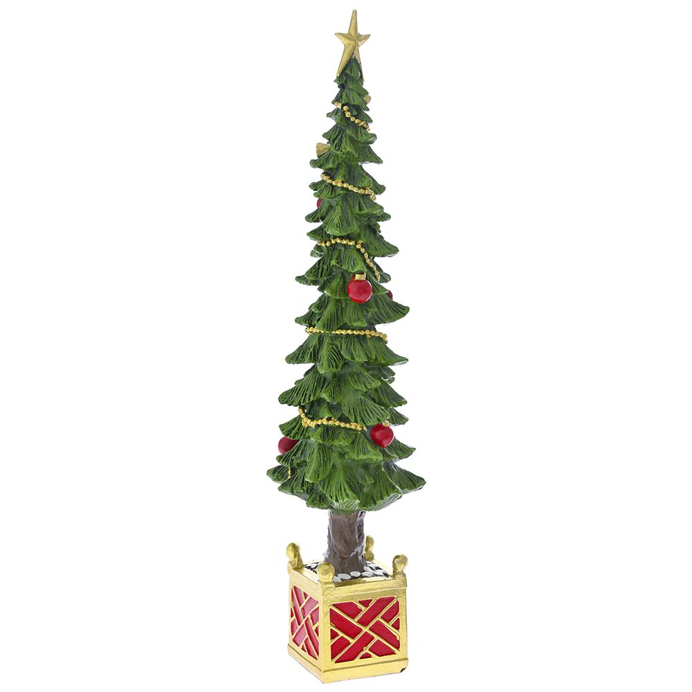 Εντυπωσιακό διακοσμητικό δέντρο από πολυρεζίνη σε κομψό σχέδιο. Η λεπτομερής κατασκευή του και η λαμπερή του υφή το καθιστούν ιδανικό στοιχείο για τη χριστουγεννιάτικη διακόσμηση ή για να προσθέσει μια αίσθηση πολυτέλειας σε κάθε χώρο. Ταιριάζει απόλυτα σε ράφια, τραπέζια ή μπουφέδες, χαρίζοντας εορταστική λάμψη.