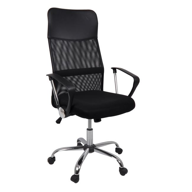 Καρέκλα γραφείου με διάτρητη ψηλή πλάτη και κάθισμα, κατασκευασμένα από pvc και ύφασμα mesh. Διαθέτει ρυθμιζόμενο ύψος, ανάκληση πλάτης και ρόδες κατασκευασμένες από νάυλον.