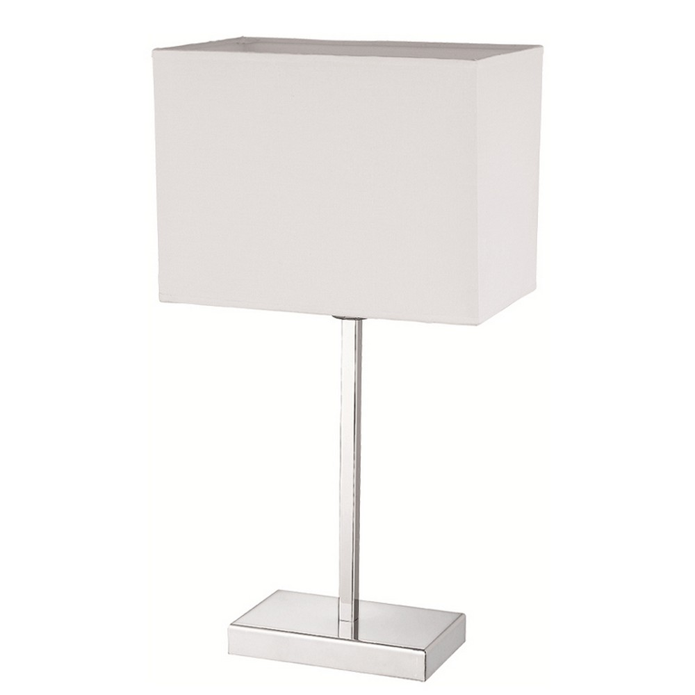 Μοντέρνο πορτατίφ με λευκό καπέλο από πλαστικοποιημένο ύφασμα και μεταλλική βάση σε χρώμιο.