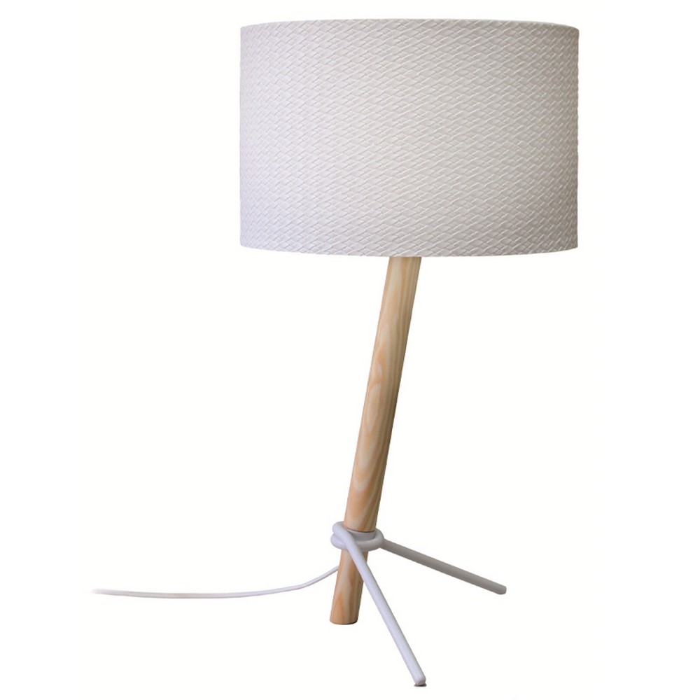 Μοντέρνο πορτατίφ με λευκό καπέλο από πλαστικοποιημένο ύφασμα και ξύλινη βάση.