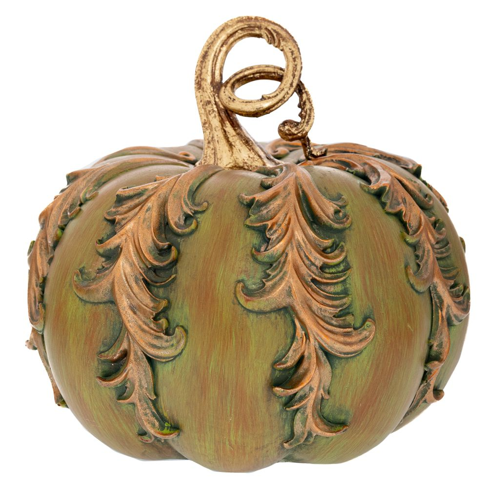 Δημιουργήστε μια εντυπωσιακή και παιχνιδιάρικη ατμόσφαιρα για το Halloween με την πράσινη αναγλυφή πολυρεζίν κολοκύθα 23x23x21,5 εκ. Ιδανική για τραπέζι, ράφι ή είσοδο σπιτιού. Η λεπτομερής κατασκευή της και το έντονο χρώμα προσφέρουν μοντέρνα, εποχιακή διακόσμηση με Halloween στυλ.