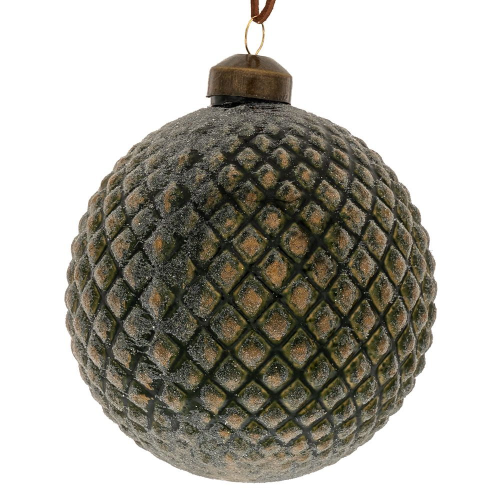 Γυάλινη μπάλα σε πράσινη αντικέ απόχρωση, ιδανική για χριστουγεννιάτικα δέντρα και γιορτινές συνθέσεις. Προσφέρει κομψότητα και γιορτινή λάμψη, δημιουργώντας ζεστή και εντυπωσιακή ατμόσφαιρα στον χώρο.