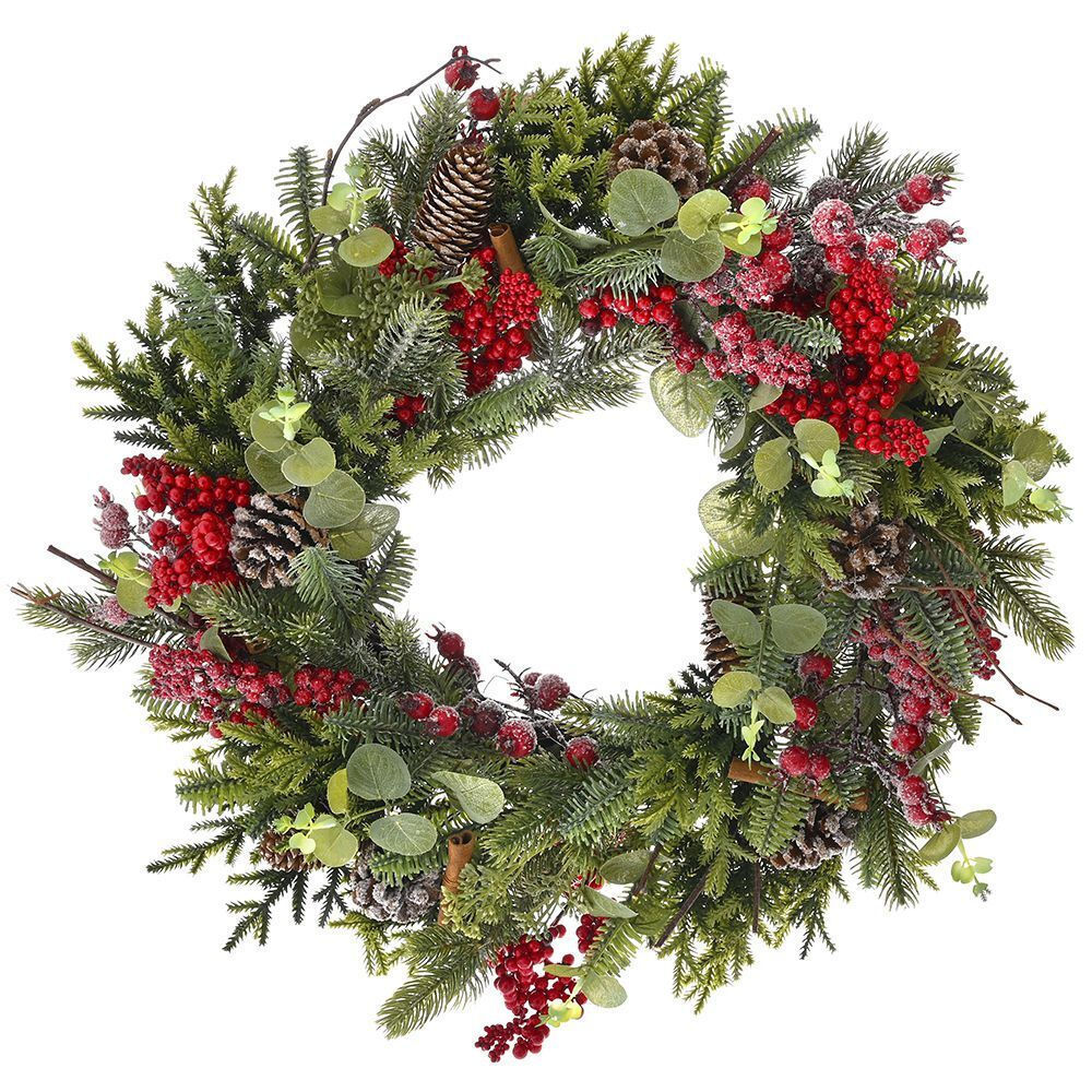Χριστουγεννιάτικo στεφάνι με κόκκινα berries και στικ κανέλας 55εκ. Υπέροχα χριστουγεννιάτικα διακοσμητικά για να στολίσετε τους τοίχους, τις πόρτες αλλά και όλους τους χώρυς σας, και να δημιουργήσετε τη δική σας παραμυθένια διακόσμηση.