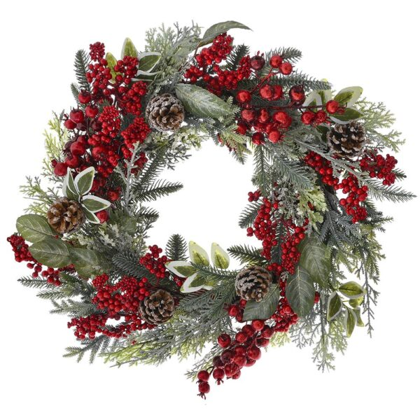 Χριστουγεννιάτικo στεφάνι με κόκκινα berries και κουκουνάρια 55εκ. Υπέροχα χριστουγεννιάτικα διακοσμητικά για να στολίσετε τους τοίχους, τις πόρτες αλλά και όλους τους χώρυς σας, και να δημιουργήσετε τη δική σας παραμυθένια διακόσμηση.