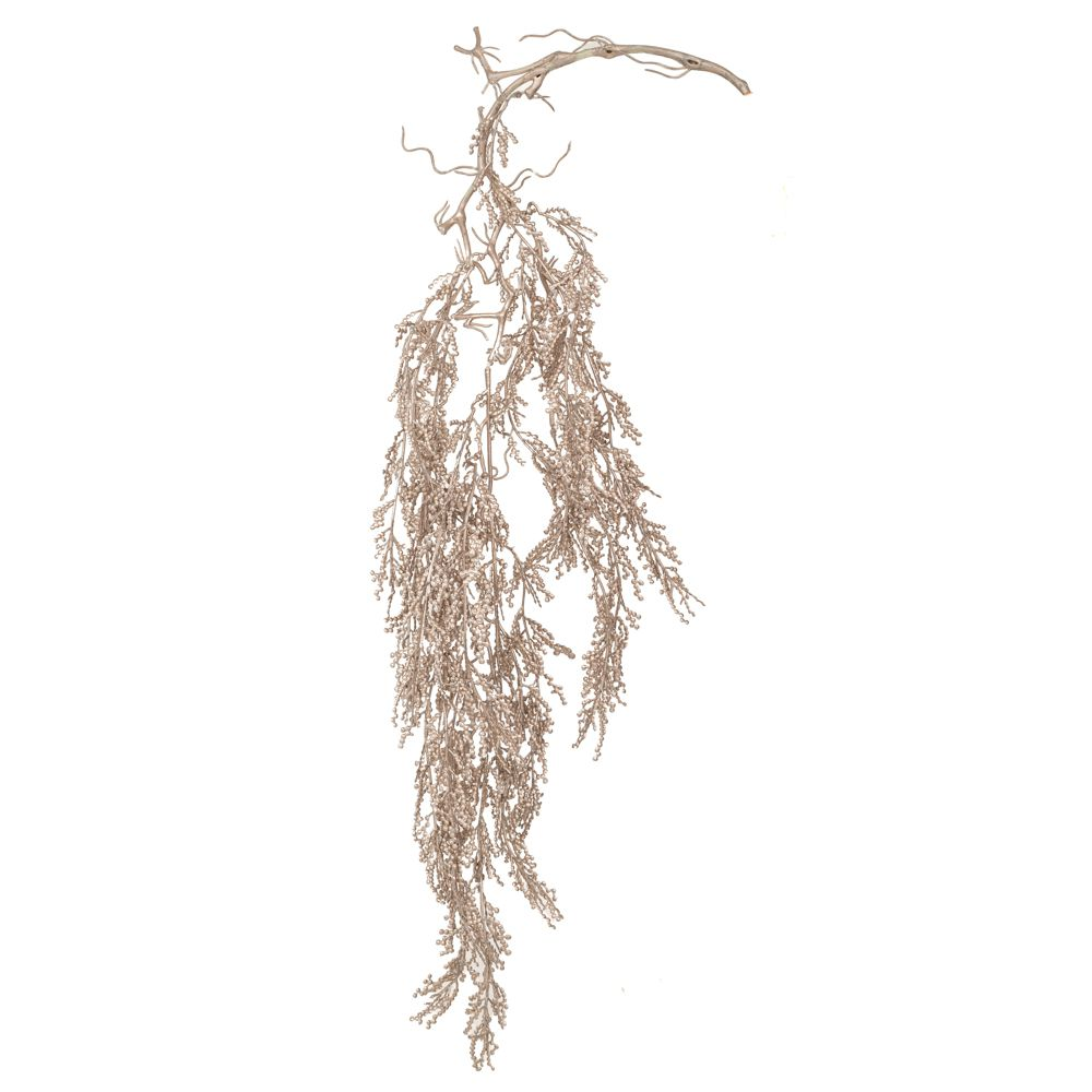 Κρεμαστό διακοσμητικό κλαδί σε σαμπανί απόχρωση, ιδανικό για χριστουγεννιάτικες και εποχιακές διακοσμήσεις. Μπορεί να τοποθετηθεί σε στεφάνια, συνθέσεις ή απευθείας στον χώρο για να προσφέρει κομψότητα και γιορτινή ατμόσφαιρα. Το ύψος 90εκ. το καθιστά εντυπωσιακό στοιχείο διακόσμησης.