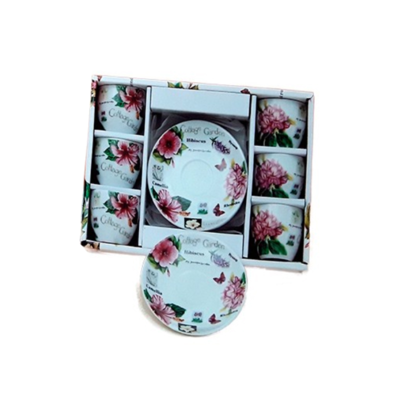 Σετ φλυτζάνια καφέ πορσελάνης 6τεμ. cottage garden. Ένα κομψό και ρομαντικό σετ με λουλουδάτο σχέδιο που χαρίζει φινέτσα και ζεστασιά σε κάθε στιγμή απόλαυσης του καφέ σας. Κατασκευασμένα από ποιοτική πορσελάνη, είναι ιδανικά για καθημερινή χρήση ή για σερβίρισμα στους καλεσμένους σας.