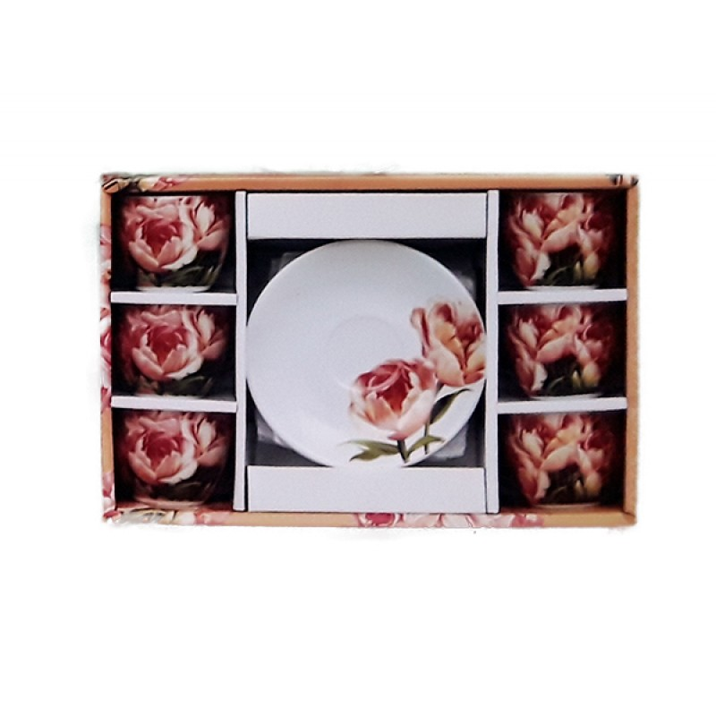 Σετ καφέ 6 τεμαχίων σε σχέδιο σομόν με ανθό, σε κουτί. Ιδανικό για καθημερινή χρήση ή για σερβίρισμα στους καλεσμένους σας με κομψότητα. Περιλαμβάνει φλιτζάνια και πιατάκια από ποιοτική πορσελάνη που εξασφαλίζουν αντοχή και κομψή εμφάνιση. Η συσκευασία σε κουτί το καθιστά ιδανικό για δώρο.