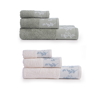 Το σετ περιλαμβάνει μια πετσέτα χεριών 30x50cm, μια πετσέτα προσώπου 50x90cm και μια πετσέτα μπάνιου 70x140cm.