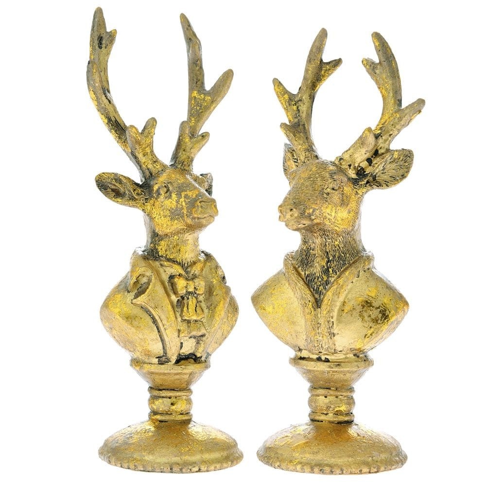 Πολυρεζίν κεφάλι ελαφιού σετ 2 σε χρυσό χρώμα 6X6X17EK.