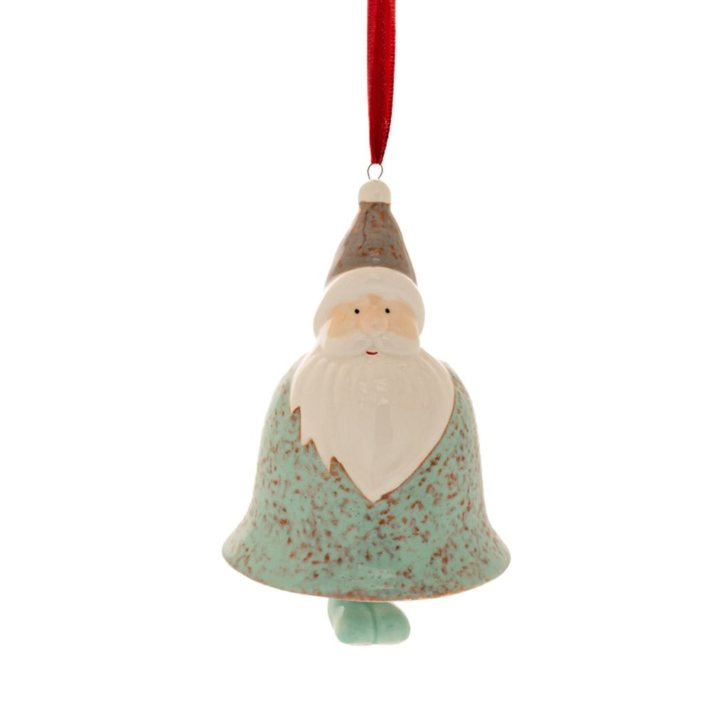 Διακοσμητική καμπάνα σε σιέλ απόχρωση με φιγούρα Αϊ Βασίλη, ιδανική για γιορτινές συνθέσεις και χριστουγεννιάτικα στολίδια. Προσθέτει χρώμα και γιορτινή ατμόσφαιρα σε τραπέζια, ράφια ή μικρές γωνιές του σπιτιού.